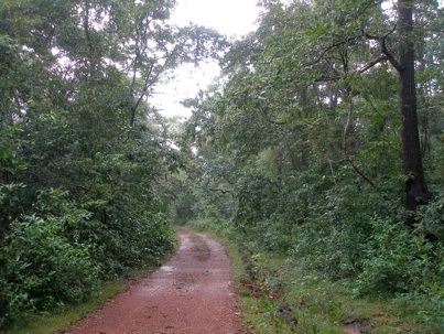 The lane outside the camp leads to open fields with petronias, shrikes and a chance of seeing peafowl and junglefowl