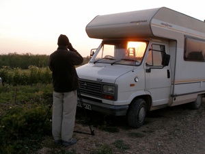 Waiting at dusk for non-existent herons - but nearby we found a great place for both species of waxbill