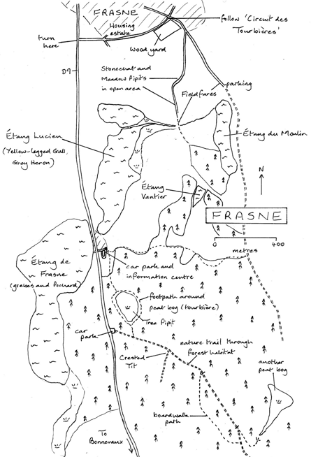 This was another site in the Jura mountains that I visited on the strength of descriptions in Jacqueline Crozier’s book Birdwatching in France North of the Loire. It proved to be rather disappointing but this map may still be helpful to any birder who goes there
