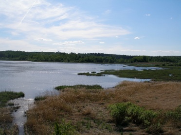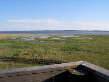 Looking in the opposite direction from the same tower you see a shallow bay good for ducks, grebes and harriers