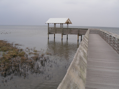 The Convention Center boardwalk takes you out into the Laguna Madre. At high tide you can see how close the wildfowl come; at low tide the shelter overlooks mudflats full of waders and herons.
