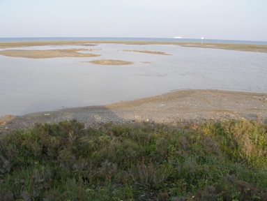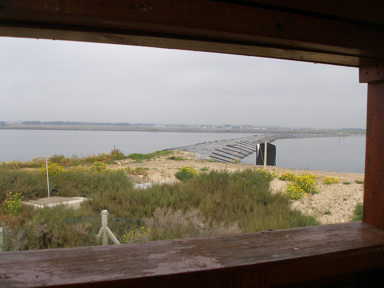 The view from the hide overlooking Larnaca Sewage works. The causeway between the two lagoons has previously been terrific for roosting gulls.