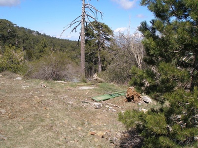 There’s a drinking pool to the left of this abandoned chalet. The endemic Coal Tit, Crossbill and Jay all come to drink here.