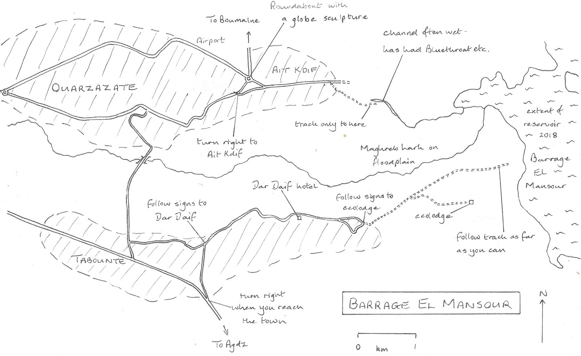 This reservoir near Ouarzazate has been exceptionally good for birds in recent years (see details of sightings in the Finding Birds app).