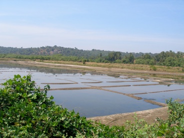 In dry seasons, most of the waterbirds such as ducks and jacanas concentrate at a few sites such as Carambolim and are unlikely to be found at places such as Pilerne and Siolim. However, in 2008, Carambolim was also dry so the best remaining site for these species was Batim Lake. In fact, since this lake is smaller, it is easier to work and may actually provide better views than at Carambolim. You can expect Lesser Whistling Duck, Cotton Pygmy-goose, Purple Swamphen and both jacanas here; Comb Duck, Spot-billed Duck and Darter are also possible and the nearby saltpans can be good for waders.