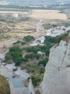 May 2012 This fabulous site has been destroyed, possibly permanently: Paul Saward writes: The Pools below the Aspro dam have been seriously scoured out by this year’s rains. The main pool no longer exists as a pool and we now have a pebbly river almost from the dam chute, to the second pool, the old weir now being by-passed by a 5m hole through the old bank. This gives a much longer “stream” but no longer do we have the old famous pond. You may recall that there are two access roads into this site. Well now there is only one. The access track (off the first road up to the dam on the Paphos side) is no longer, having been totally scoured out by the rains. This is now totally impassable even by 4x4 and access should be got from the little lay-by off the Choletria/Nikokleia road. I note also that the second pool is now very close to the normal track up to the first pool, is clearly in peril, and someone is already creating a higher-level route off to the right.