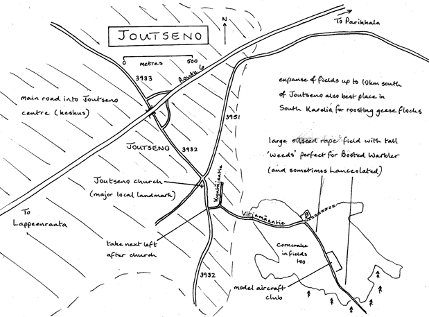 The whole area south of Joutseno is exceptionally good for passage geese but in recent years this particular spot has become acknowledged as perhaps the most reliable site for Booted and Lanceolated Warbler in Finland. In 2010 there were no Lanceolated Warblers in the whole country and very few Booted Warblers except here in the oilseed rape field next to the model aircraft club.