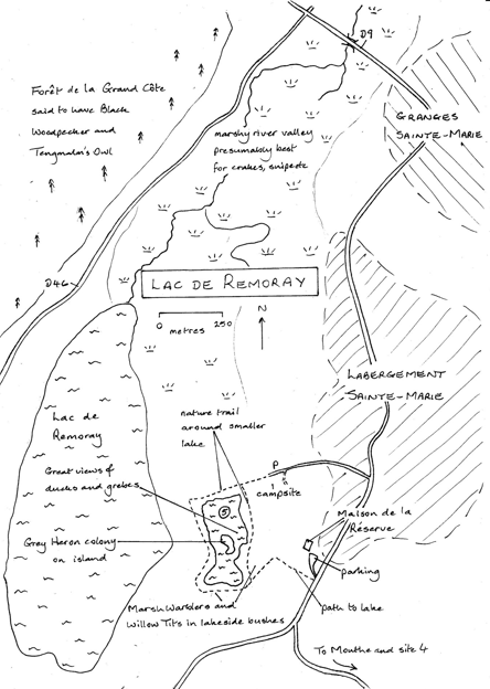My book Finding Birds in mid-France describes my attempts to find the birds in the Jura mountains that were described in Jacqueline Crozier’s book Birdwatching in France North of the Loire. This site gets a mention in my book but, to be honest, it wasn’t productive enough to justify a map in the book itself.