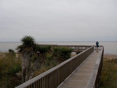 This is the observation platform at Stover Point, overlooking the Laguna Madre the shores of which are teeming with waders