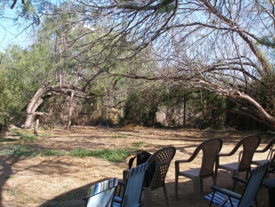 In winter, the feeding station at Salineno is managed by the Valley Land Fund. In 2011, the volunteer warden, Cheryl Longton, had these chairs set up outside her mobile home, overlooking the feeders.