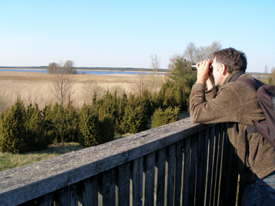 The main tower is great for looking for migrants or reedbed birds but the open water is still some distance away - you need a scope