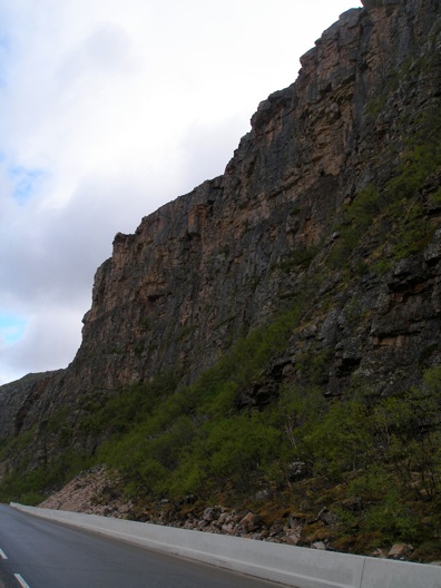 The scenery along Tanafjord is magnificent. The famous Gyrfalcon site is on the cliffs to the right (in shadow)