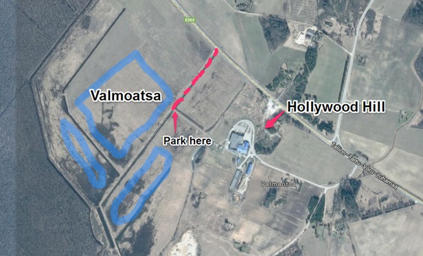 Shaun Robson reports that there are fields to the north of Hollywood Hill that regularly flood. In 2015 these provided feeding areas for waders even when Aadla and Rapina were dry. Shaun provided the map below to show how to find the pools.