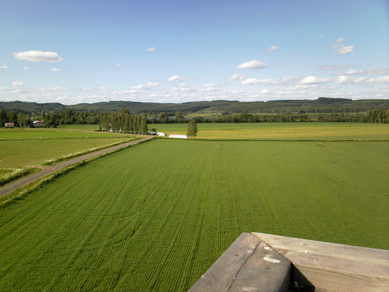 This is the view from the tower at Hopeakallio. Geese settle in the fields during passage periods, White-backed Woodpeckers feed in the copse next to the tower and this is one of the best sites in Finland for migrant raptors.